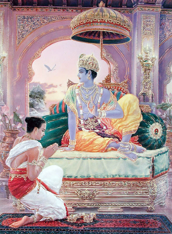 “He is the true friend, protector, Lord, most beloved one, the master and the very Self or Atman of all embodied beings; winning Him over, by giving up the body to Him, I shall enjoy His company like Lakshmi and find everlasting happiness in Him alone.